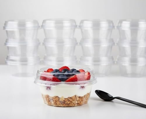 Generic - علب جيلي بلاستيكية شفافة، دائرية الشكل، 50 قطعة، سعة 250 مل، مع أغطية محكمة، للحلويات والمقبلات، متعددة الاستخدامات، للمنزل والمطاعم