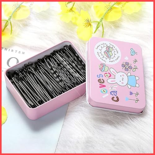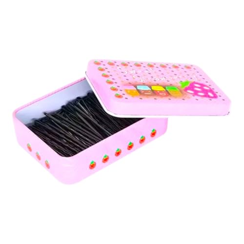Generic - 50 Pcs Black Hair Pins with Strawberry Pink Storage Box Set Colorful Metal Box Cartoon Cute
