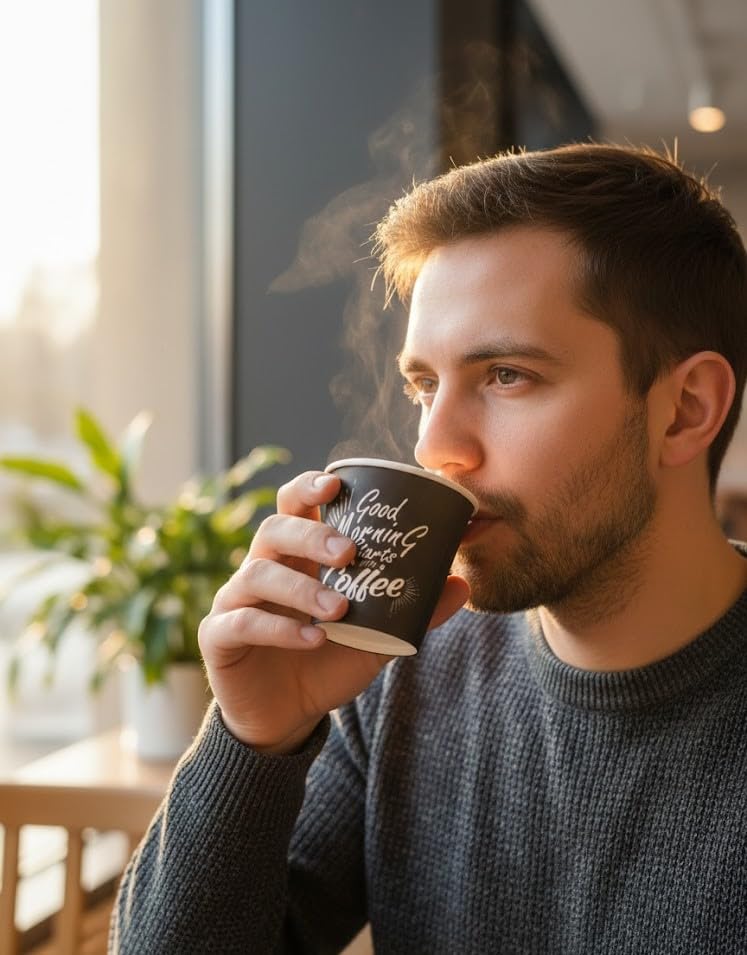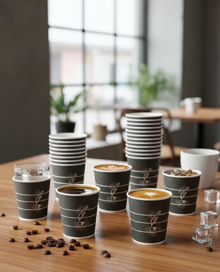 - أكواب ورقية للقهوة: مثالية لتقديم المشروبات الساخنة مثل القهوة والشاي والكابتشينو في المنزل أو المكتب أو المناسبات
