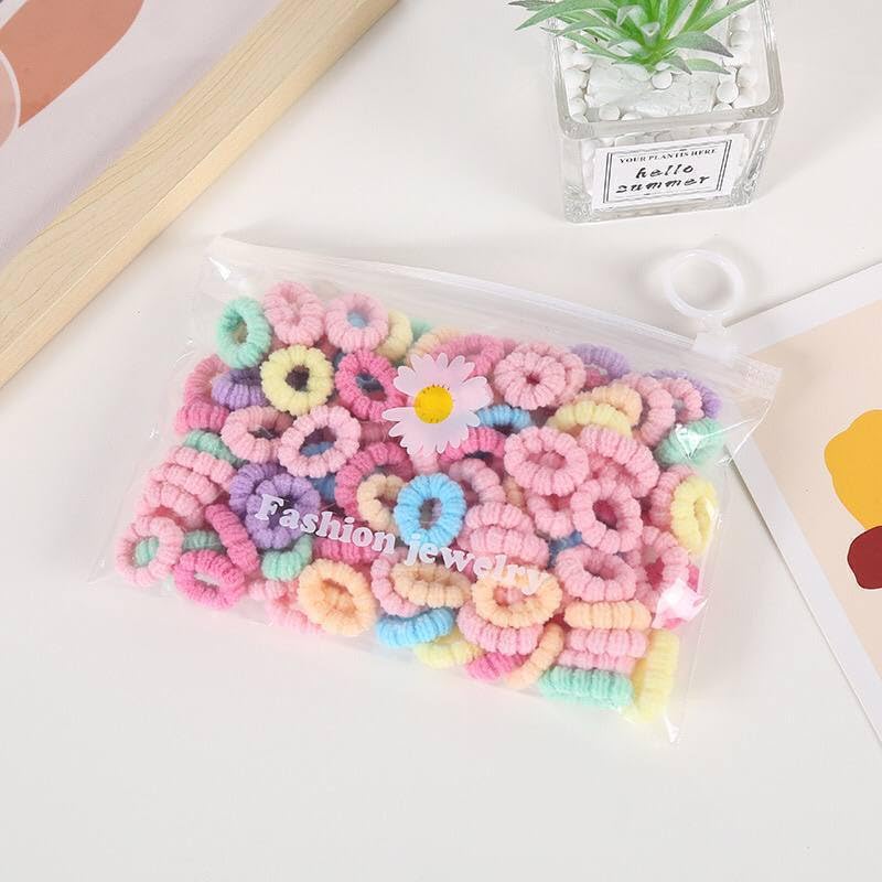 - مجموعة متنوعة: حزم من مطاط الشعر الناعم بألوان متعددة تشمل الأزرق والوردي والأرجواني والأصفر