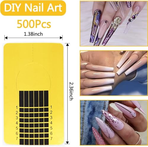 Generic - 500 PCS Acrylic Nail Forms, Rectangle Nail Forms, for Acrylic Nails, Nail Extension Form Guide Stickers for Polygel, Gel Nails Art Paper Form for DIY Manicure Design