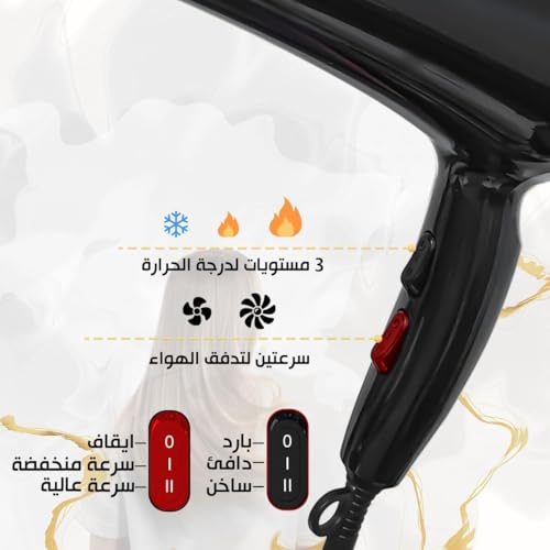 - إعدادات الحرارة والسرعة القابلة للتخصيص: صمم تجربة التصفيف الخاصة بك مع ثلاثة إعدادات لدرجة الحرارة وخيارين للسرعة. اعثري على المزيج المثالي لنوع شعرك والتصفيف المرغوب فيه.