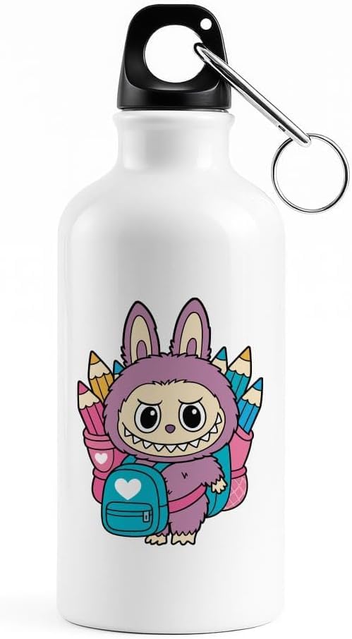Generic - 500ML Aluminum Water Bottle – Cute Design, Lightweight & Durable with Carabiner Clip – Kids School Bottle, Sports & Outdoor Use - زمزمية مدرسة للأولاد, فلاسك للمدرسة