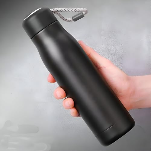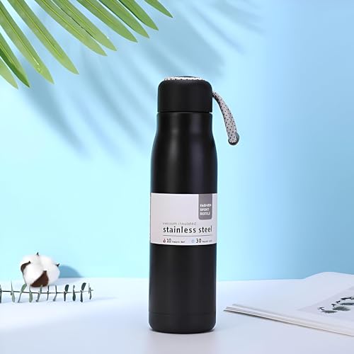 Generic - زجاجة رياضية من الستانلس ستيل بجدار مزدوج سعة 500 مل - معزولة وخالية من BPA وقابلة لاعادة الاستخدام للمشروبات الساخنة او الباردة، مثالية للتخييم وصالة الالعاب الرياضية والانشطة الخارجية (اسود)