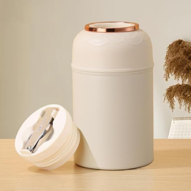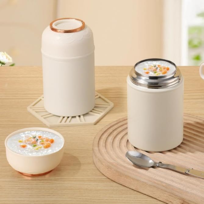 Generic - 500ml Insulated Food Jar with Spoon – Portable Thermal Lunch Container, Large Capacity Stainless Steel Insulation Pot for Outdoor & Travel (White)