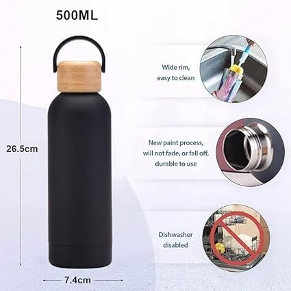 - Modern Design: 304/18 Stainless Steel Thermal Bottle with Elegant Stretch Finish with Wooden Sealed Lid