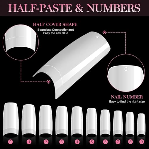 - 【Professional Nail Tips 】: You can paint and apply with gel, acrylic or fiberglass nail polish decorations, making your tips charming and stylish.The half cover french false nail tips are great for nail tips art learner and professional specialist, suitable for nail salons and DIY nail tips art at home.