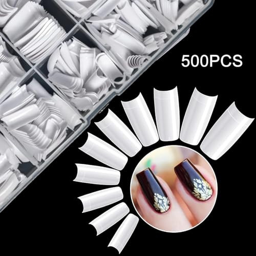 - 【500 Pcs False Nail Tip with 10 Sizes】: The 500pcs white False Nails Tips offers 10 different sizes with 50 nails of each size that fit most fingers, which is individually numbered 0-9, so they're easy and convenient to choose the suitable size.(Tip: The new packaging of french tip nails has been upgraded. For better storage, we store numbers 0-1 in 2 compartments)