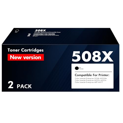 - المحتويات: عبوة من قطعتين من خراطيش الحبر الأسود 508X CF360X بديلة لخرطوشة الحبر الأسود اتش بي 508X عالية الإنتاجية ومتوافقة أيضًا مع خرطوشة الحبر الأسود اتش بي 508A، عبوة من قطعتين.