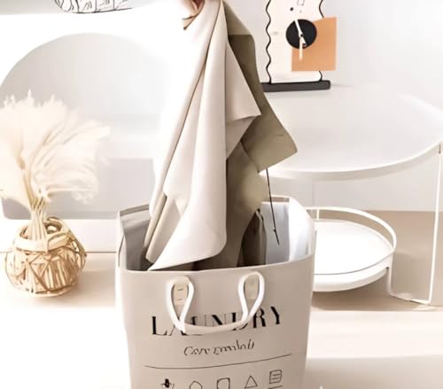 Generic - منظم سلة غسيل قابلة للطي سعة 50 لتر مع مقابض، سلة غسيل عصرية محمولة لغرفة النوم وغرفة الغسيل والخزانة والحمام (بيج)