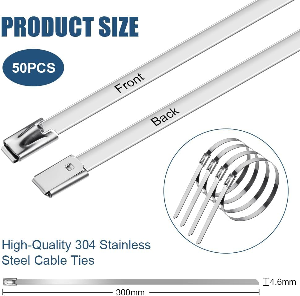 Generic - 50pcs 304 Stainless Steel Cable Ties Self Locking Cable Ties Cold Resistant to -60℃ 4.6x300mm