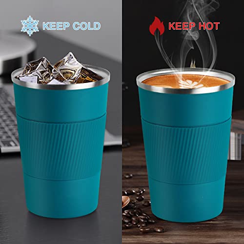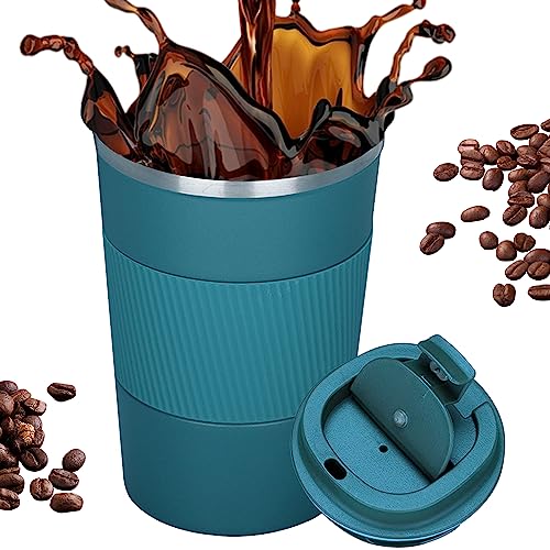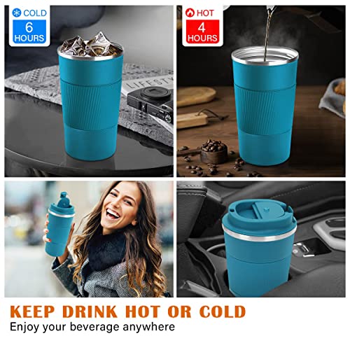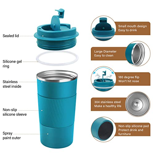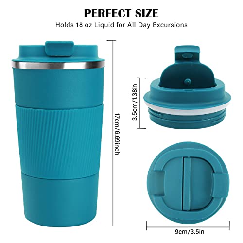 Necomi - كوب قهوة من الفولاذ المقاوم للصدأ معزول بتفريغ الهواء للسفر وللمنزل والمكتب والعمل في الهواء الطلق، رائع للمشروبات المثلجة والساخنة، سعة 510 مل (ازرق)