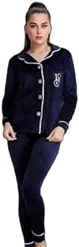 Generic - بيجامة شتوي كاجوال للنساء قطعتين قطيفة مقاس موحد كود 5204 لون ازرق