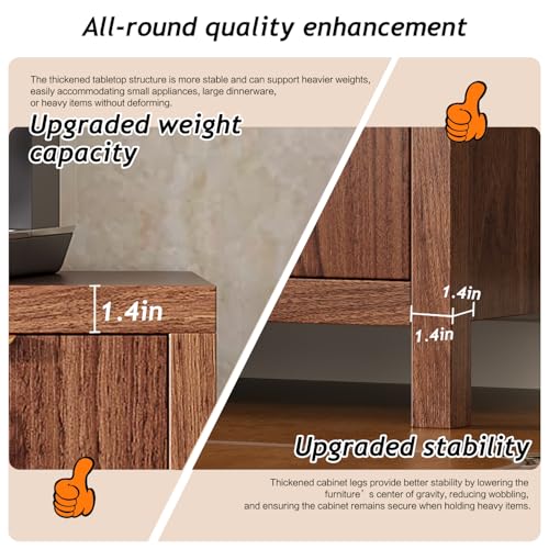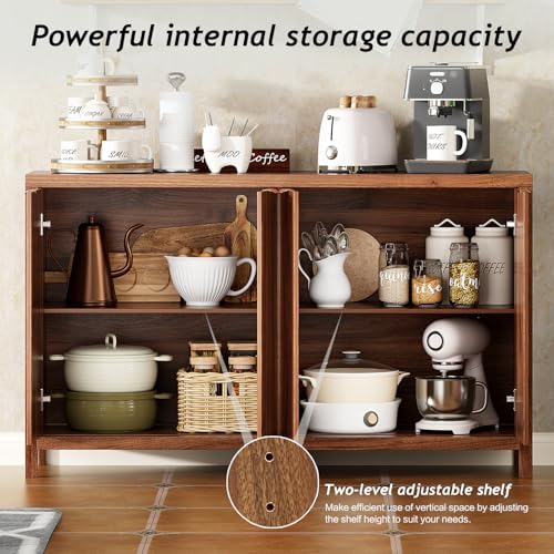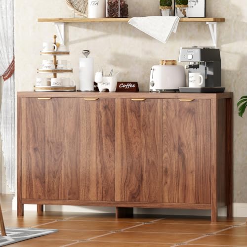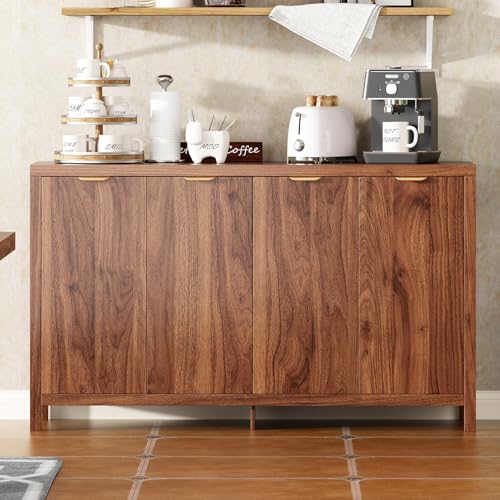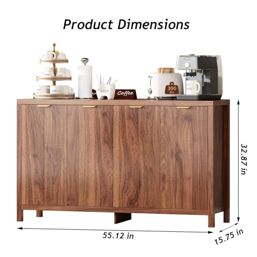 Arulvmrn - خزانة تخزين بوفيه جانبية كبيرة 55 انش مع ارفف وابواب، طاولة مطبخ خشبية عصرية للمطبخ وغرفة الطعام، بني