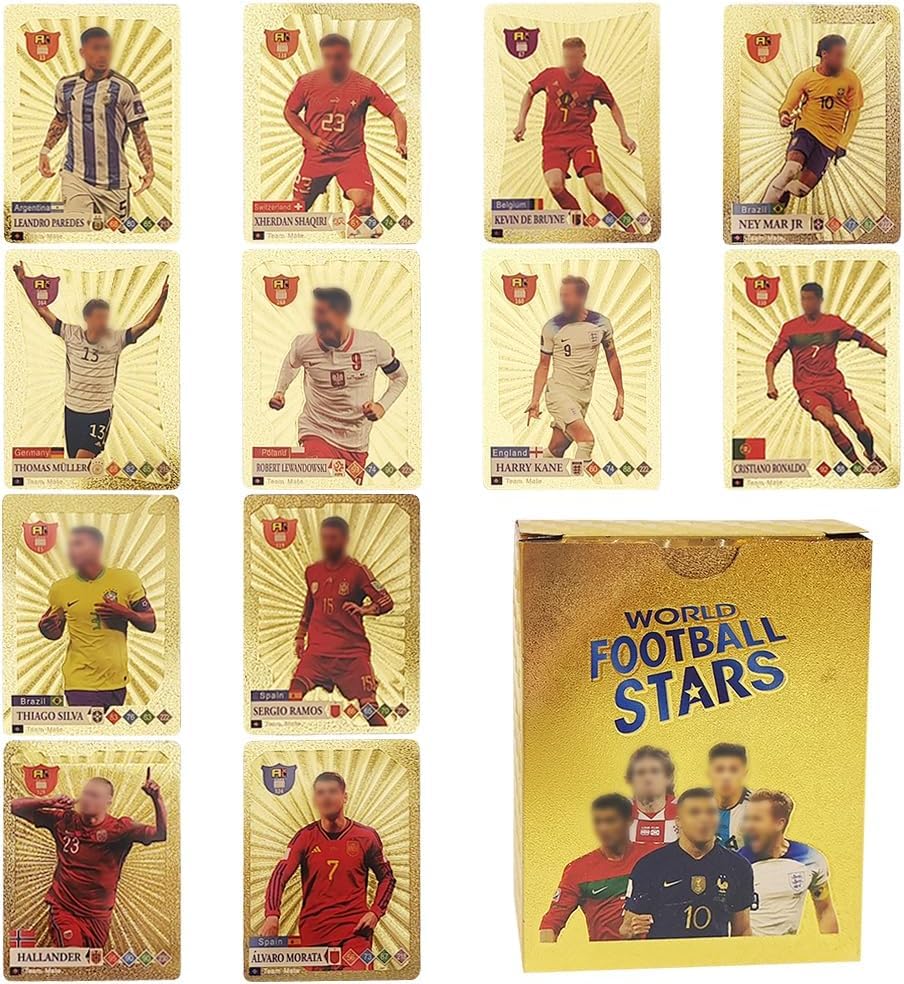 - 【محتويات العبوة】تتضمن هذه المجموعة 55 بطاقة نجوم ذهبية رائعة وساحرة، بطاقات كرة القدم متوفرة في مقاس مثالي لك ولأصدقائك، فهي تأتي بمقاس 9 سم × 6 سم، مما يجعلها أكثر ملاءمة للتجميع أو اللعب. ضعها داخل حامل البطاقات واستمتع بمظهرها المتألق مع باقي البطاقات.