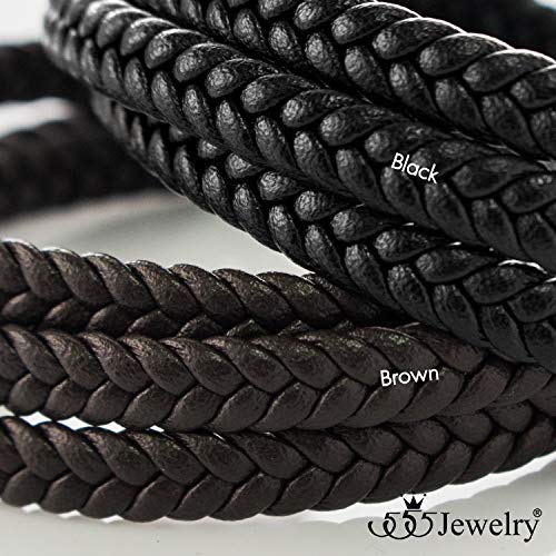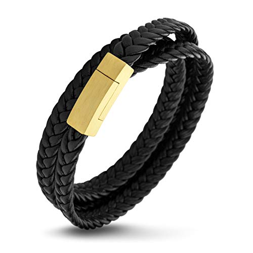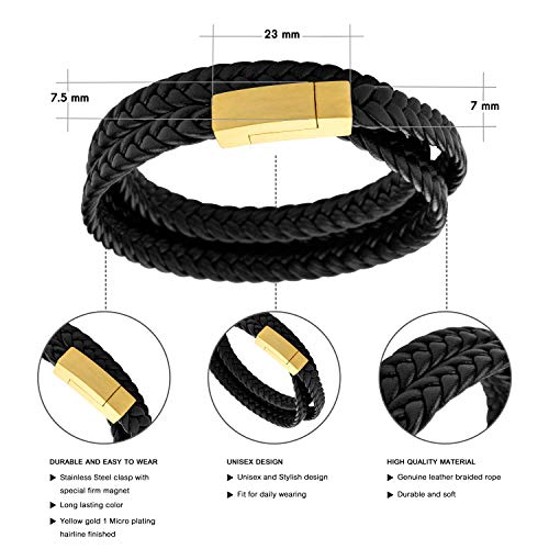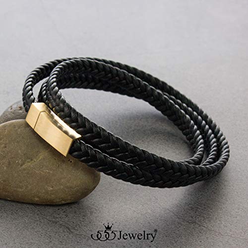555Jewelry - سلسلة من ستانلس ستيل مضفر مزدوج من الجلد سلسلة حبل قابلة للتعديل مع مشبك مغناطيسي بسيط من 555 جوليري، مجوهرات اكسسوارات سوار، لون اسود في ذهب اصفر 7.5 انش, 7.5 inches, جلد، للنساء