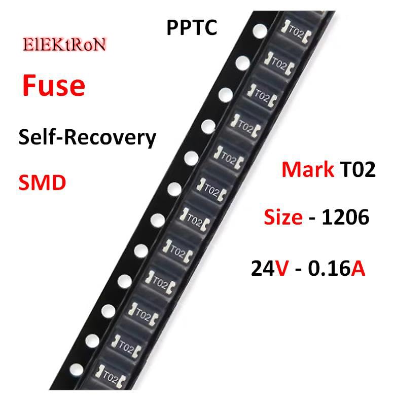 - 5pcs Micro Surface Fuse 1206mm 0.16A 24V - PPTC Self Recovery Resettable Fuse Mark T02 SMD 24V Size 1206 0.16A