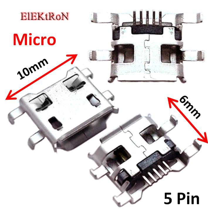 Generic - 5pcs - 5P Female Port Socket Female Port 5P SMD SMT Micro USB 2.0 Charging Socket Jack B Type 5 Pin Mini Connector Repair (Long pin) - Shape 24 Thin