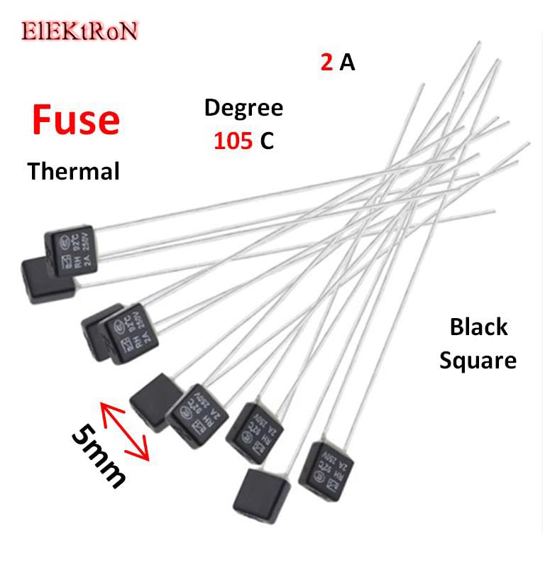 Generic - عدد 5 قطع من فيوز حراري - Black Square Fan Motor LED Thermal Fuse 105C - 2A degree RH Temperature Fuse