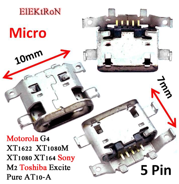 Generic - 5pcs Female Port 5P SMD SMT Micro USB 2.0 Charging Socket Jack B Type 5 Pin Mini Connector G4 XT1622 XT1080M XT1080 XT164 M2 Excite Pure AT10-A
