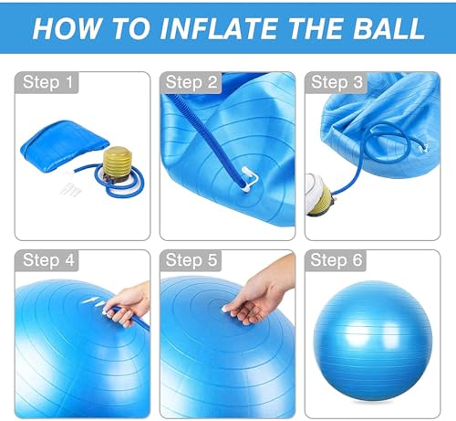 5Qebhram - 5Qebhram Extra Thick Yoga Ball Exercise Ball, Heavy Stability, Pregnancy and Physical Therapy, Quick Pump Included Fitness - Anti Burst Thick with Hand Home Gym Birthing Yoga Ball 75cm (Multicolor)