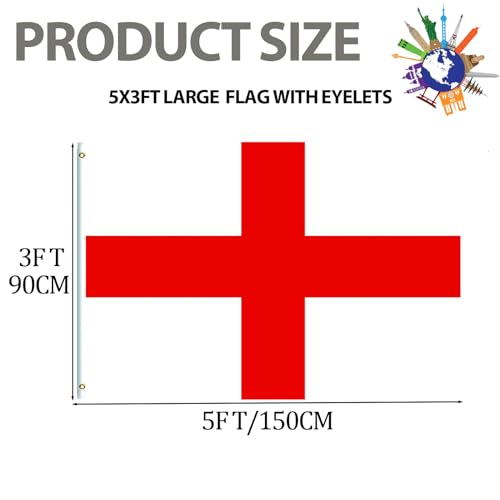 - 🚩Large England Flag Size:Large England Flag St Georges Cross Flag for Euro Football Cup 2024 5x3ft flag measures: 150*90cm .
