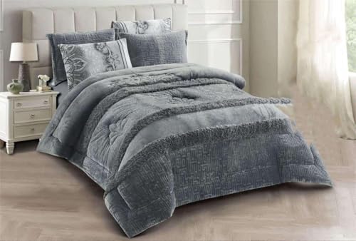 Generic - لحاف العاليمة مستورد فرو قطيفة 6 قطعة عباره عن 1 لحاف مقاس 230 * 250 + 4 خداية مقاس 50 * 70 + مخدة مقاس 50 * 160 (رصاصي)