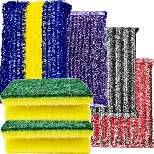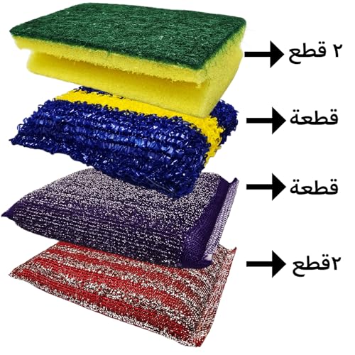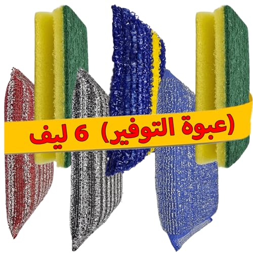 Generic - 6 ليف مواعين لتناسب جميع انواع الاسطح والمواعين ليف تنظيف المطبخ: 2 ليفة كرستال + 2 إسفنجة لباد خضراء + ليفة سلك + ليفة أروبه | إزالة الدهون القوية وتنظيف الأواني والمواعين