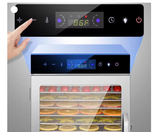 Generic - ماكينة تجفيف الفواكه والخضروات واللحوم , فولاذ مقاوم للصدأ ، اصنع بنفسك وجبات خفيفة صحية ، 6 طبقات تايمر 24 ساعة - درجة حرارة من 30 إلى 90 درجة مئوية, إغلاق تلقائي , شاشة سهلة الاستخدام ,اللون فضي
