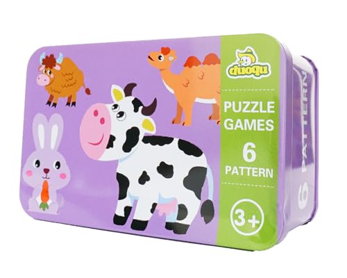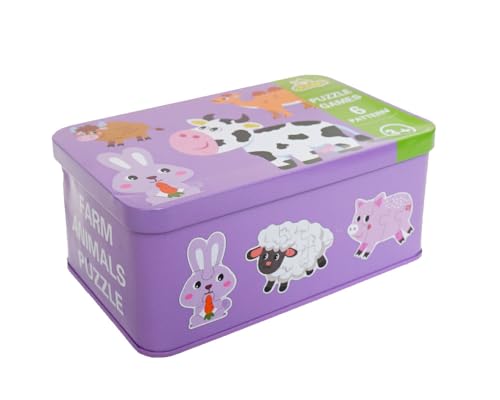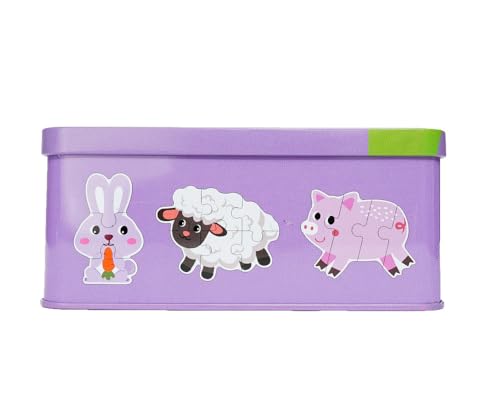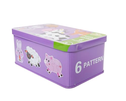 Generic - لعبة بازل خشب 6 أشكال مختلفه 28 قطعه داخل علبة معدن - موف Ofer-14