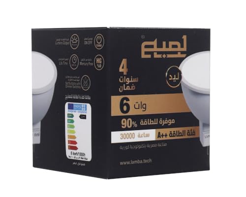 LAMBA - كاسة شوكة 6 وات اضاءة وورم ضمان 4 سنوات قدرة تشغيلية تصل الي 30000 ساعة توفير طافة حتي%90 "6-watt white fork cup, 4-year warranty Operational life of up to 30000 hours Energy savings of up to 90%"