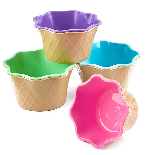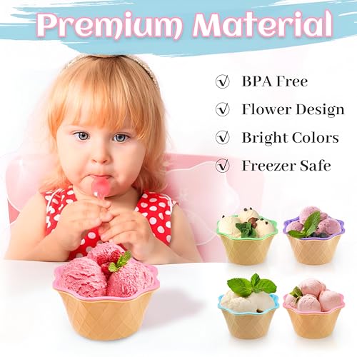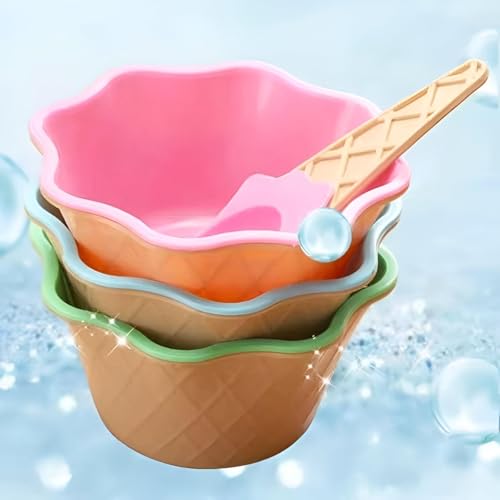 Generic - 6 أطباق آيس كريم بلاستيكية نابضة بالحياة مع ملاعق، مثالية لاستضافة الحفلات والاستمتاع بالزبادي والبودينغ والحلويات الأخرى