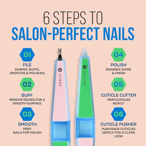 Generic - 6-in-1 Nail Buffer & Cuticle Cutter & Pusher | Professional Nail Care Kit for Salon-Like Manicure at Home | Multi-Functional Nail Shaper, Smoother, Polisher & Shine