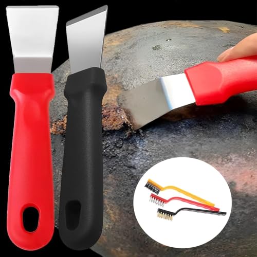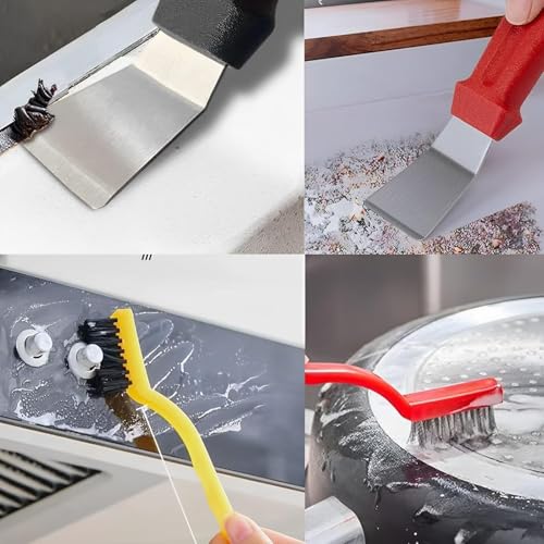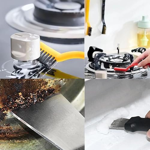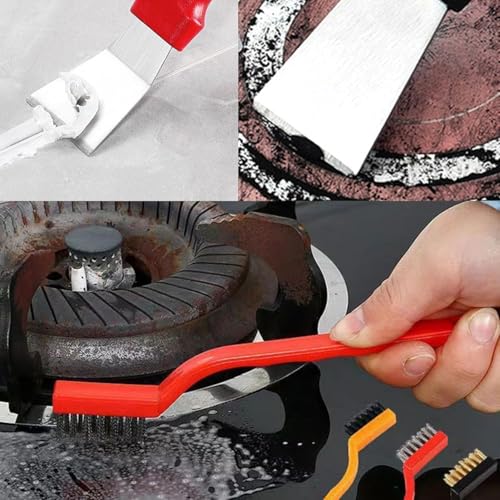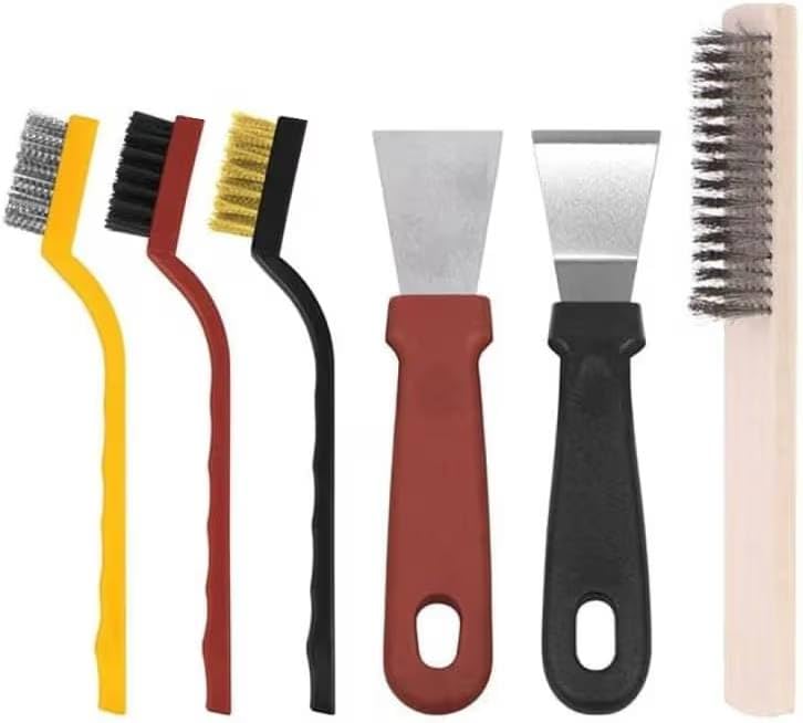 - COMPLETE CLEANING SET: 6-piece professional cleaning tool kit includes 2 non-scratch scrapers, 3 wire cleaning brushes with different bristle types, and 1 large brass cleaning brush for comprehensive cleaning solutions