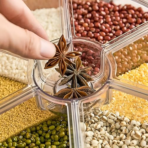 - Designed with a 6-grid rotating structure, this set efficiently organizes multiple dry foods in one compact unit, optimizing countertop or cabinet space without clutter.