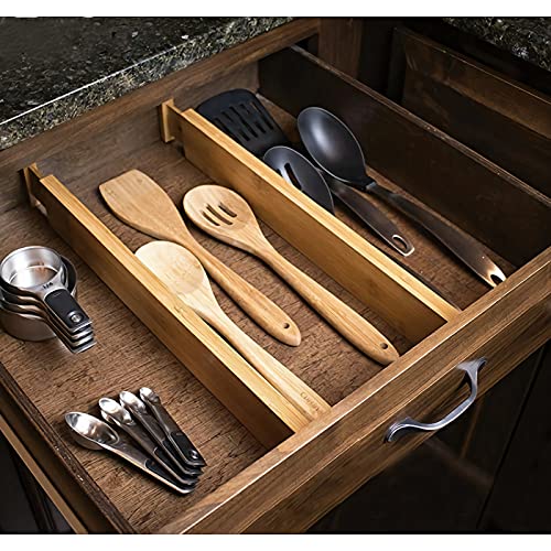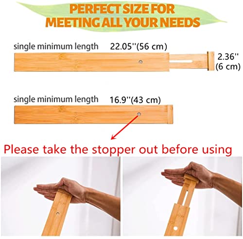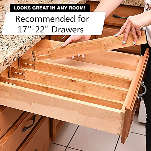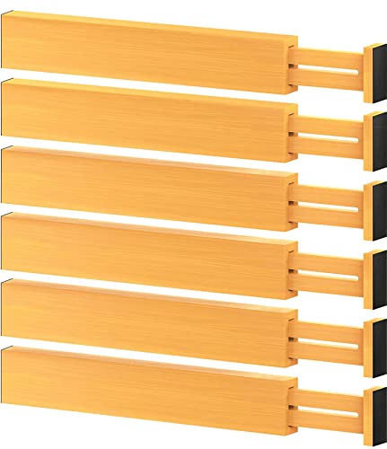 lxllnqh - 6 Pack Adjustable Bamboo Drawers Dividers,Spring Loaded Drawer Organizers (17-22 IN),Large Expandable Drawer Organization Separators for Kitchen,Bathroom,Dresser,Bedroom and Office