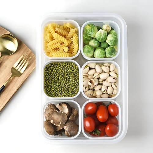 Generic - 6 Pack Reusable Plastic Food Storage Containers with Removable Compartments Designed for Efficient Storage and Preservation of Fruits, Vegetables, Meat, Seafood