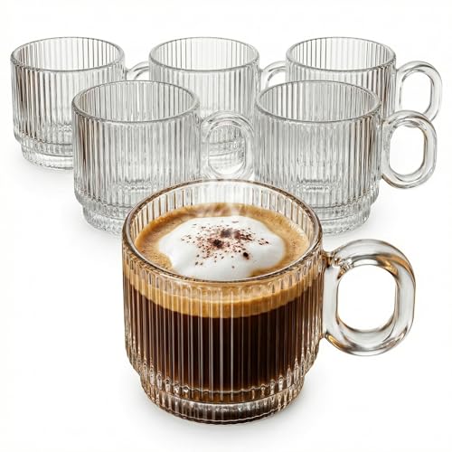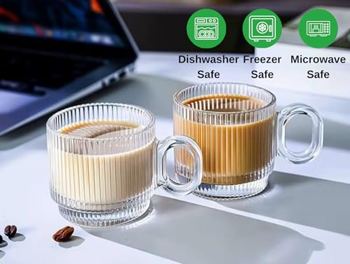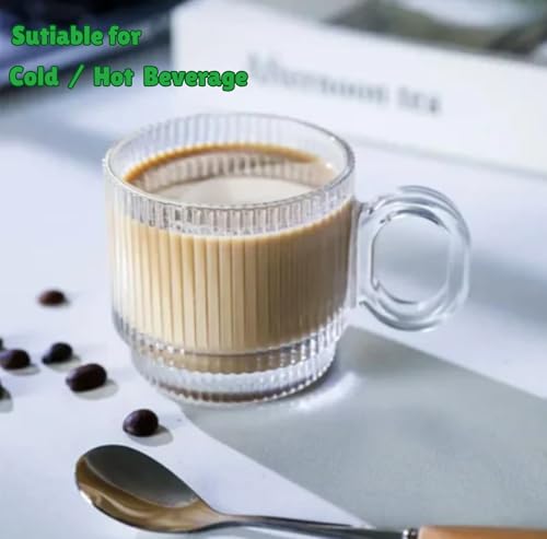 - ✨ TRENDY RIBBED GLASS DESIGN: Impress your guests with these vintage-style ribbed mugs. The unique striped texture beautifully reflects light and showcases the rich color of your coffee. This modern clear coffee mug adds a touch of luxury to your kitchen or coffee corner, far outshining basic plain cups.