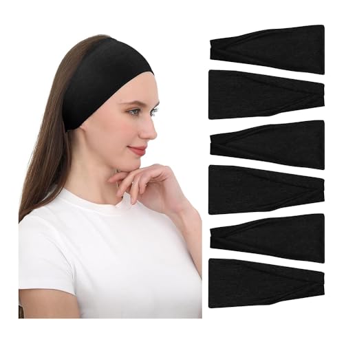 GQ - 6 Pack Women's Lightweight Stretchy Headbands - Breathable Soft Fabric, 45cm-75cm Elasticity, No Ball/Shrink/Hair Damage, Ideal for Yoga, Travel, Daily Use & All Seasons (6pcs-Black)