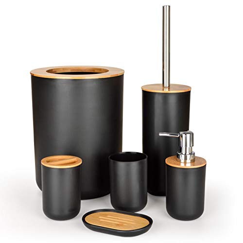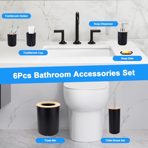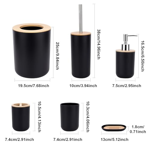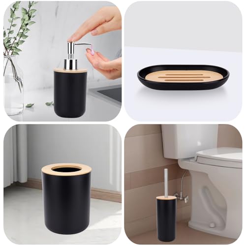 GreeSuit - 6 Pcs Bamboo Bathroom Accessories Set, Bathroom Accessories Set, Lotion Bottles, Toothbrush Holder, Toothbrush Cup, Soap Dish, Toilet Brush, Bin