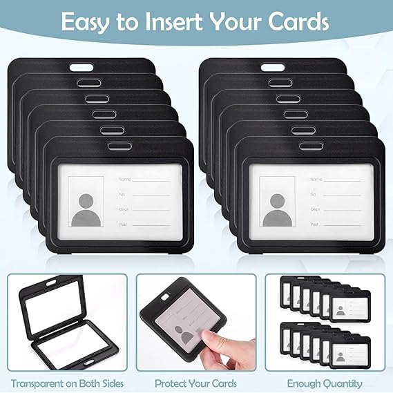 - DOUBLE SIDED TRANSPARENT CARD HOLDER: The holder is made of high-quality transparent material that provides excellent protection for your card from damage or scratches. It is also designed with a double-sided slot, allowing you to place two cards or display information from both sides without having to take the card out, saving you time and effort.