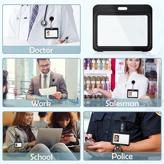 - EASY AND SAFE Horizontal Design: The card holder horizontal design provides greater clarity of ID data and selfie making it the perfect choice for formal and professional occasions. It is equipped with a strong and durable clip that ensures the card is securely held in place, reducing the risk of losing it.