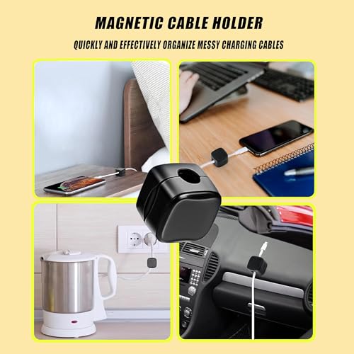 StarFarr - 6 Pcs Magnetic Cable Holders Clips,Adjustable Cable Organizer Clips,Hide Phone mobile cables clips,Under Desk Cable Management,Adjustable wire holder for Home Office Phone Car Wall Desktop (Black)