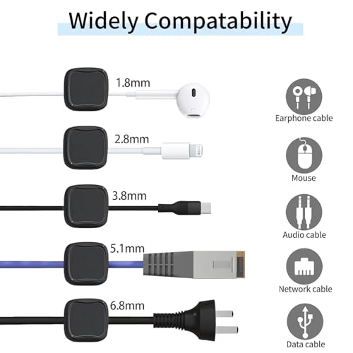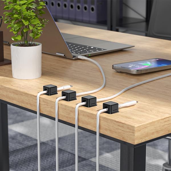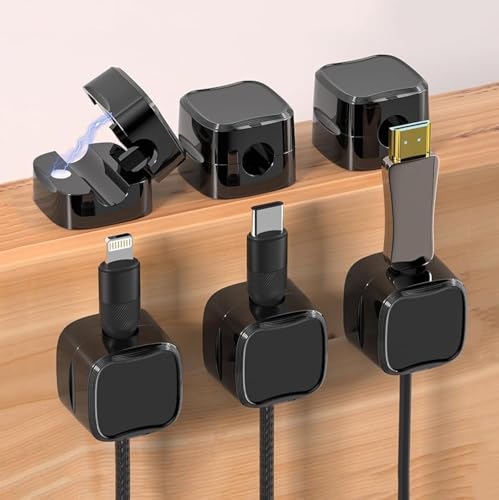 - 【Magnetic Opening and Closing】The unique magnetic opening and closing cable clip design Convenient and fast place and remove cables. Compared with the silicone wire organizer that cannot be fixed and adjusted, cable organizer uses a sophisticated 60° rotating shaft and magnetic locking cord design, helping you easily a cord off or easily add a cord easily.