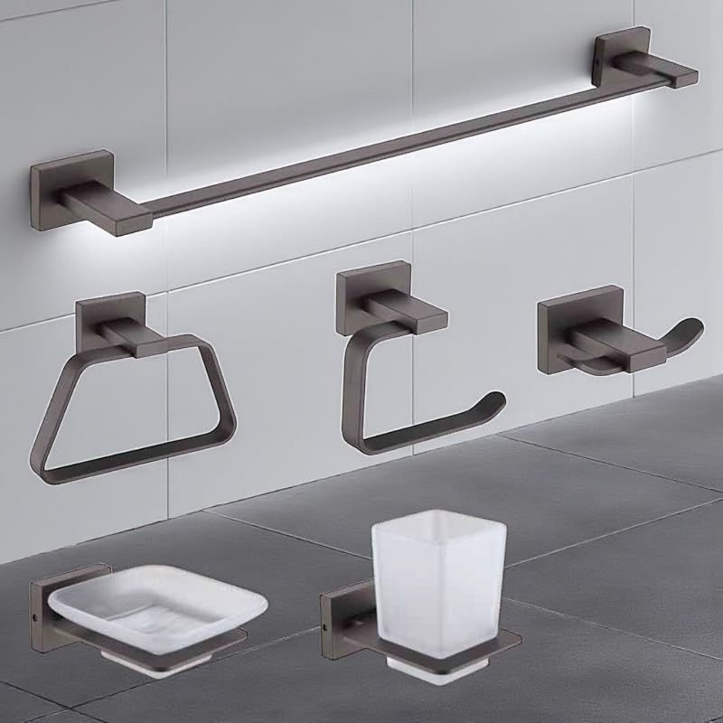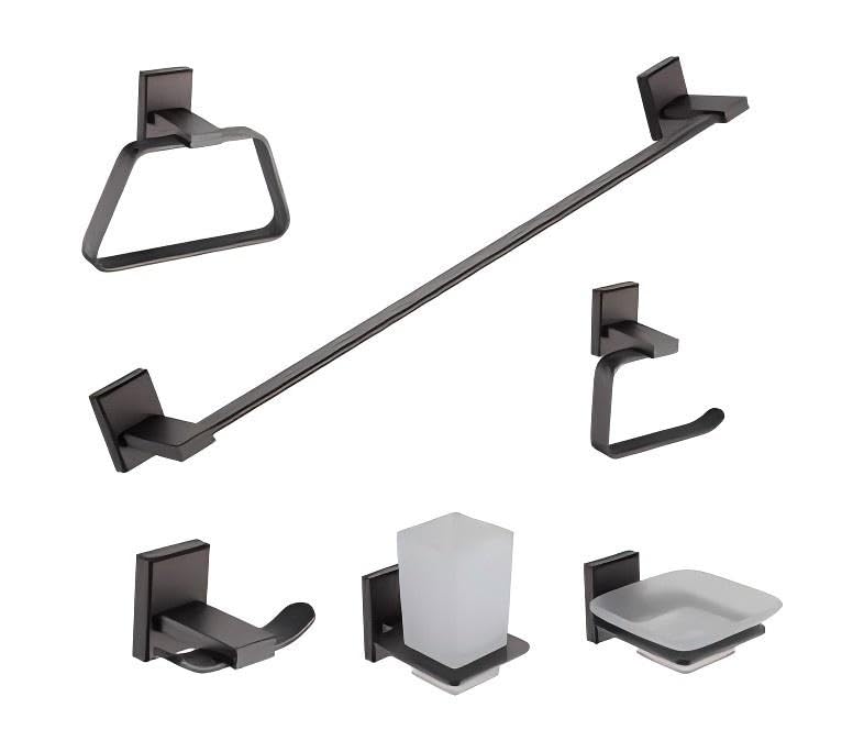 Generic - 6 Piece Bathroom Accessories Set SUS304 Stainless Steel Rustproof – 24" Towel Bar, Toilet Paper Holder, Towel Ring, Robe Hook – Elegant Wall Design (Black)