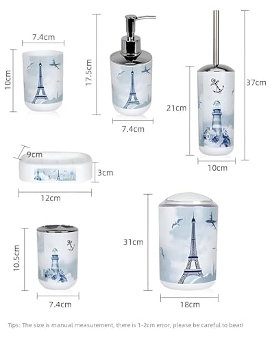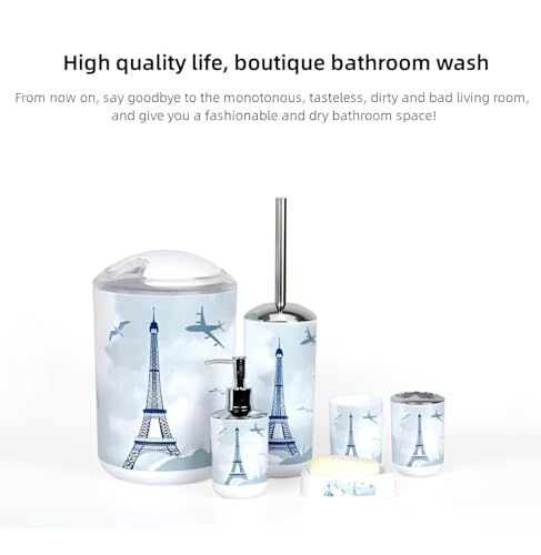 Generic - طقم حمام بلاستيك مطبوع مكون من 6 قطع لتخزين مستلزمات الحمام بلمسة منارة ساحلية، للمنازل أو الفنادق ويجمع بين الأناقة والعملية في الاستخدام اليومي (خيار 1)