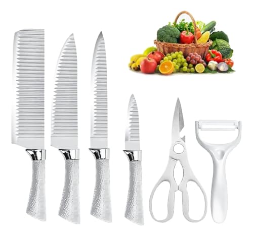 Generisch - مجموعة سكاكين احترافية جرانيت مضلعة مكونة من 6 قطع وشفرات ستانلس ستيل عالية الكربون مع مساند متينة طقم سكاكين احترافي مكون من 6 قطع من الستانلس ستيل والكربون (فضي في جراي)