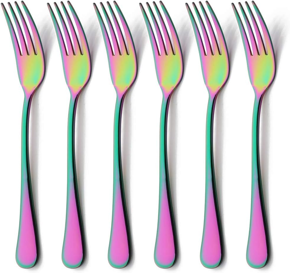 Generic - 6-piece small and large rainbow-colored dining spoon set (6 small forks)