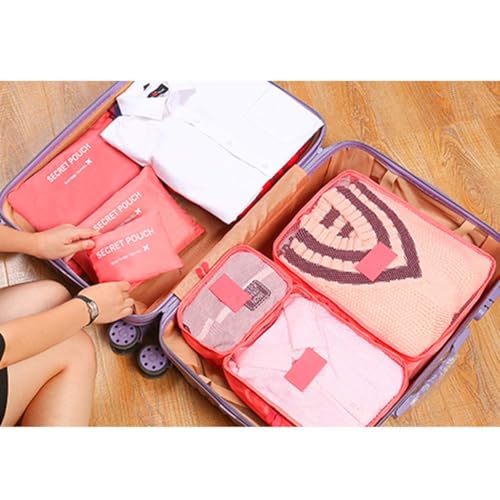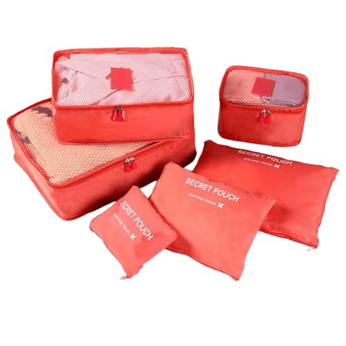 Generic - 6 Pieces Watermelon Red Travel Storage Bag Set Clothes Organizer Set Includes 3 Square and 3 Bags for Clothes and Luggage Organizer