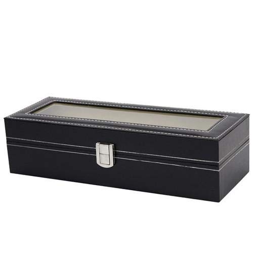 Other - 6 Slots Grid PU Leather Watch Boxes Casket Display Box Jewelry Storage Organizer Case locked Watch With Glass Top Winder